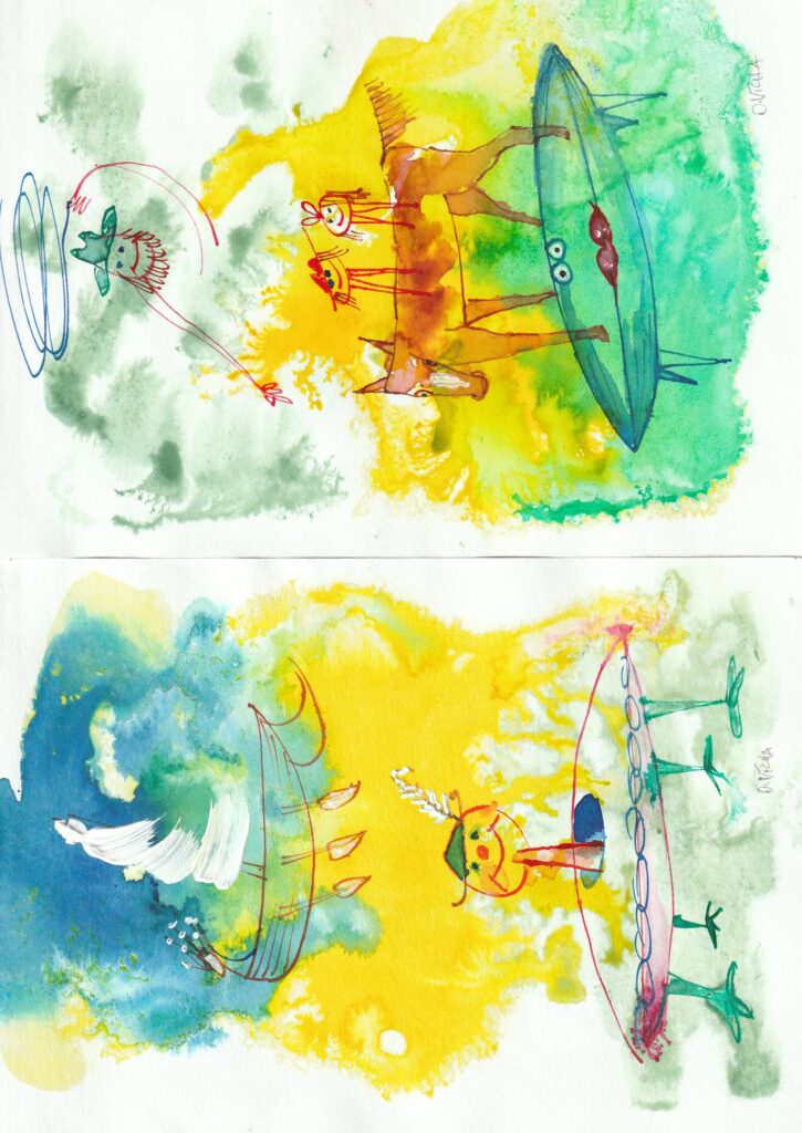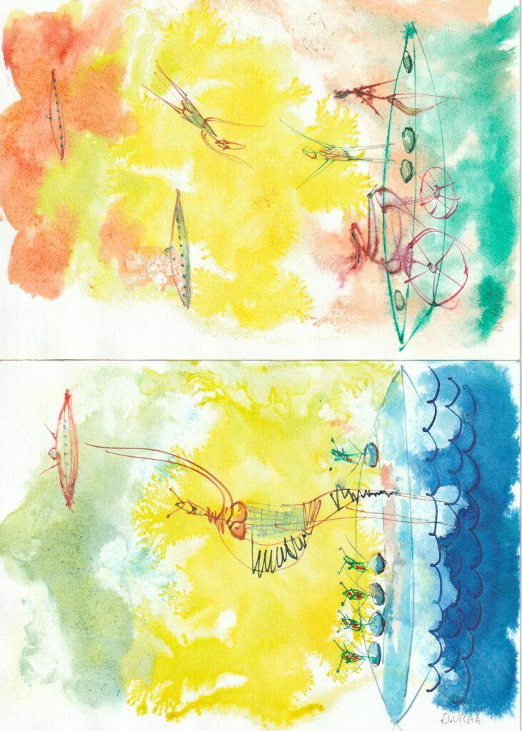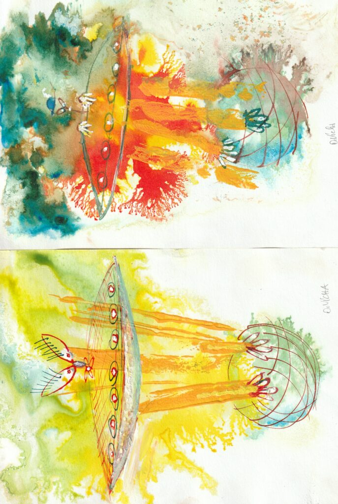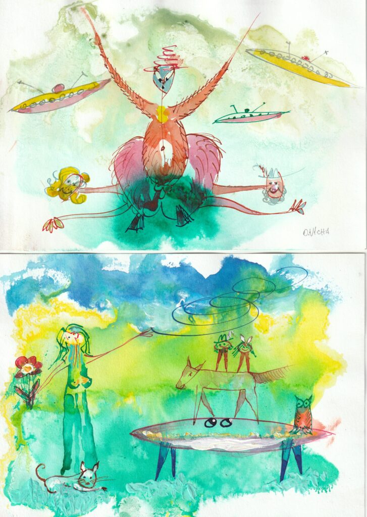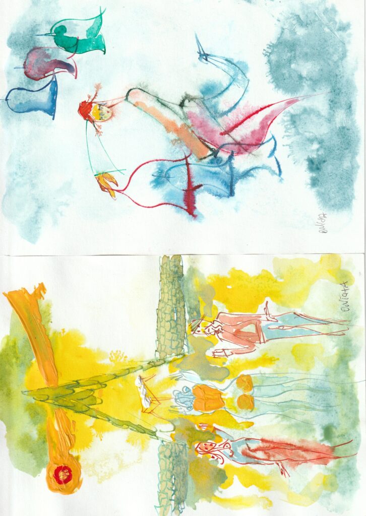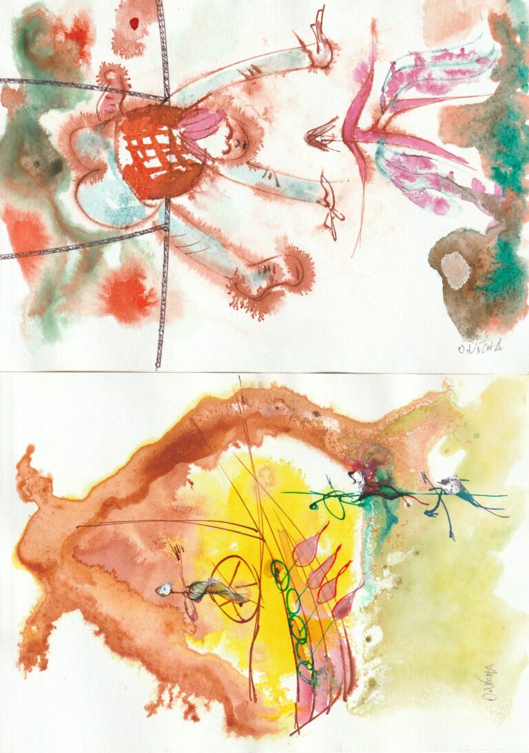 Barevné perokresby plus kvaš